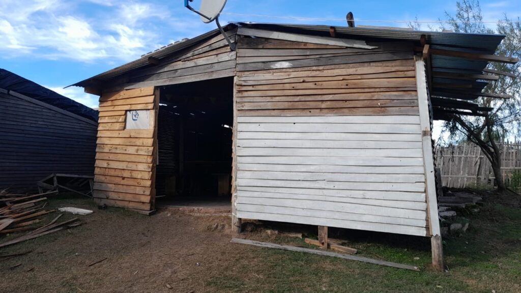 El comedor, que funciona como pequeño refugio comunitario, se levanta con lo justo: paredes de madera, un techo improvisado, sin puerta ni baño. Las sillas desgastadas, los bancos rústicos y las pocas mesas disponibles hablan de un espacio que resiste como puede. En días de frío intenso, calor extremo o lluvias persistentes, el salón quedaba inutilizable, sin ofrecer abrigo ni la mínima comodidad necesaria para sostener una clase.