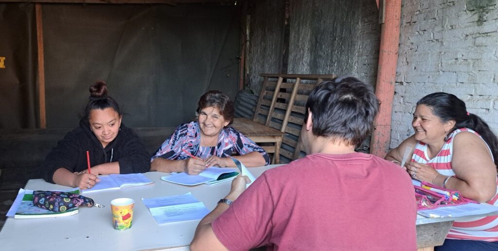 Dos de ellas asistieron con regularidad. La tercera, Lorena Gauna, de 37 años, tuvo varias inasistencias debido a problemas de salud y situaciones familiares —vive con su esposo e hijos—. A pesar de presentar dificultades en la expresión oral, lo que también repercute en su lectura, Lorena se esfuerza por avanzar, decidida a demostrarles a sus hijos que ella también puede. Carga con una infancia atravesada por la violencia, pero aun así enfrenta cada actividad con voluntad y un deseo profundo de progresar en lectoescritura y cálculo.