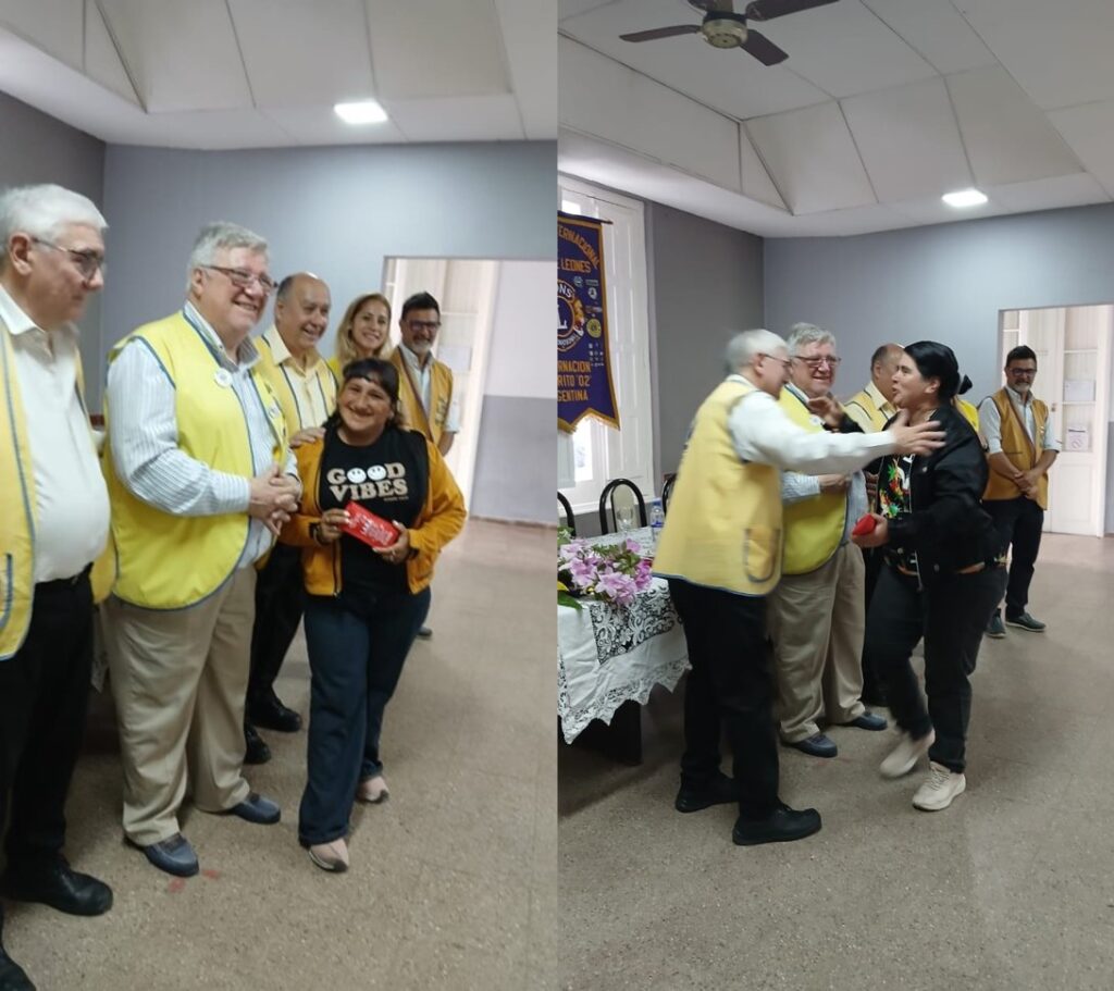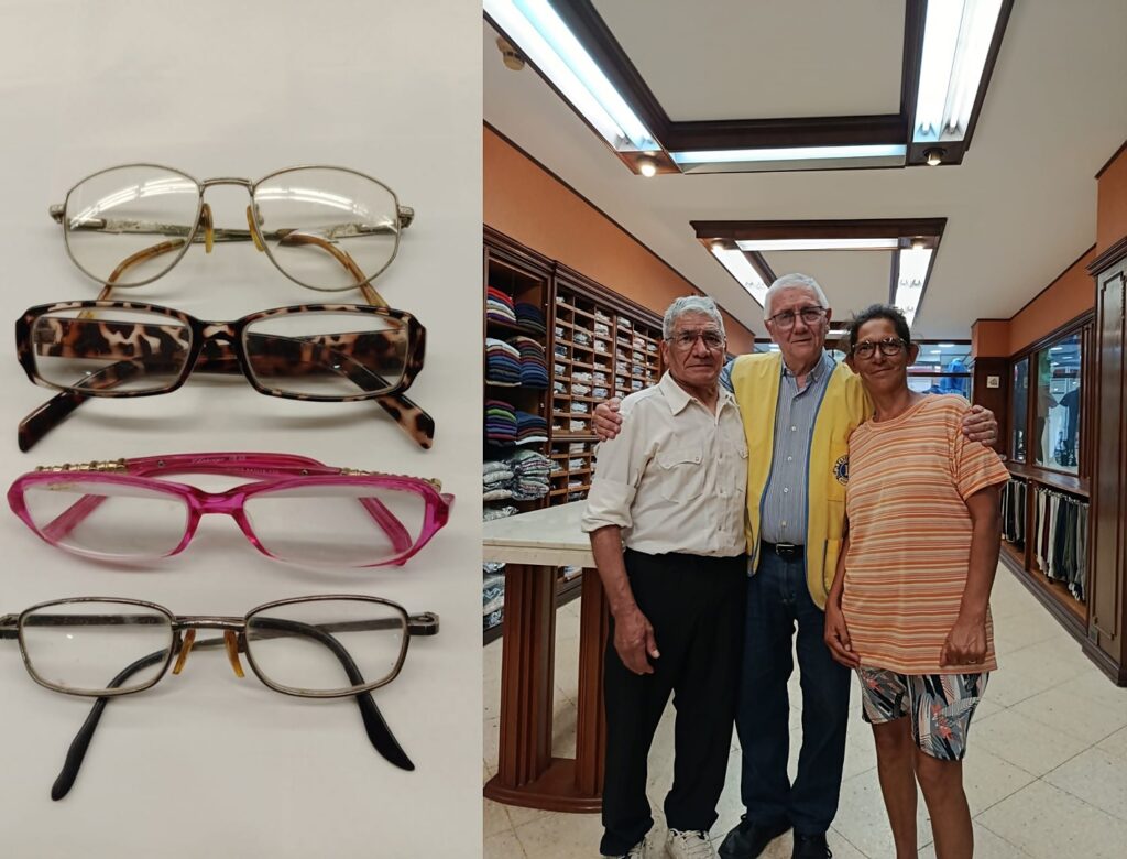 A la izquierda los marcos donados por la Asociación Educando a Cielo Abierto y a la derecha el representante del Club de Leones haciendo entrega de los anteojos.