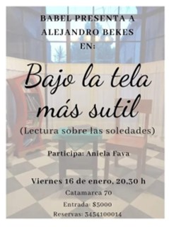 El viernes 16 de enero, a las 20.30 horas, la Librería Babel (Catamarca 70) abrirá sus puertas para una experiencia distinta, íntima y necesaria: “Bajo la tela más sutil”, un encuentro que propone detener el ritmo, afinar la escucha y dejarse atravesar por la palabra.