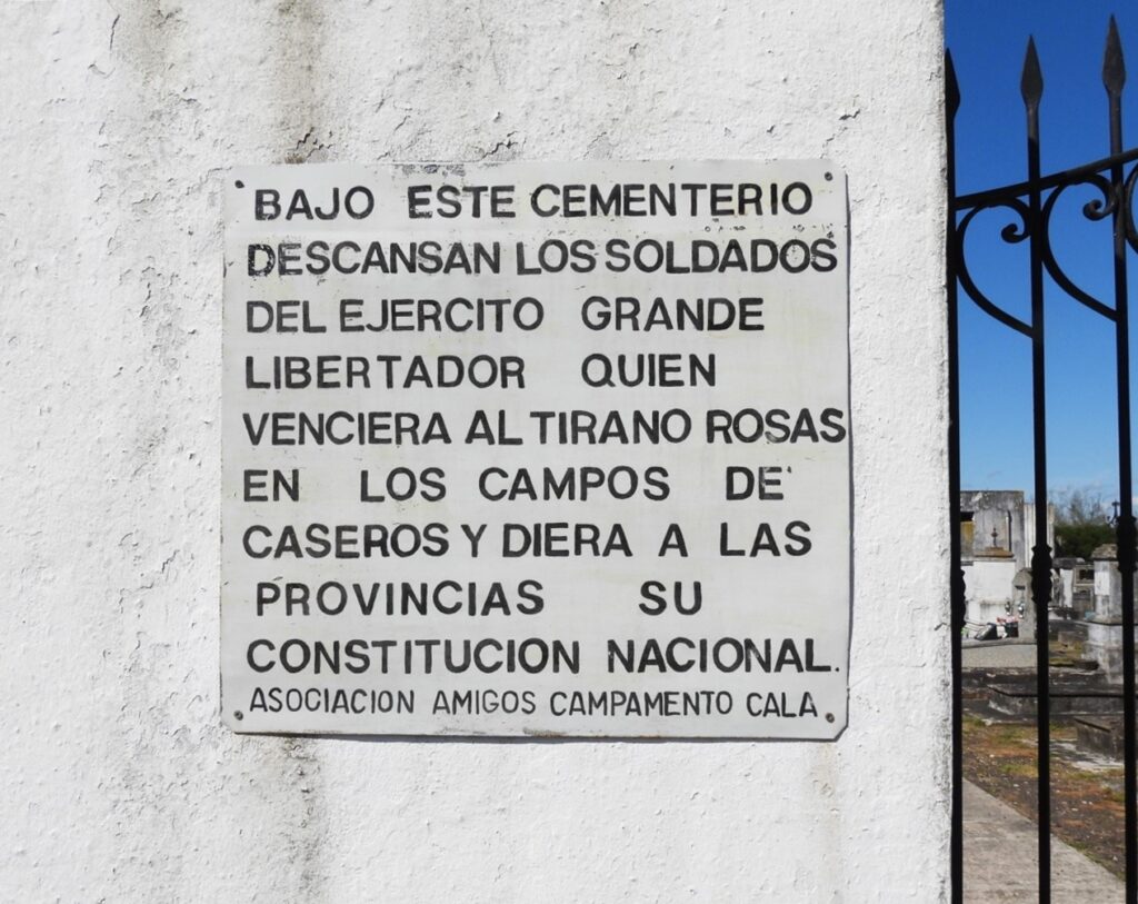 Cuando el Ejército Grande partió hacia Buenos Aires, el número de habitantes del Campamento Calá se redujo considerablemente, razón por la cual también se redujeron las sepulturas. Y a partir del asesinato de Urquiza, que implicó un tremendo golpe para los lugareños, al destruir todo lo que servía para el ejército, para que no fuera tomado por los asesinos, todo entró en un estado de abandono. Sin embargo, los pocos soldados que ahí permanecían, junto a sus familias, y algunas personas que habitaban los alrededores, tenían la necesidad de enterrar a sus difuntos en ese solitario cementerio, que parecía que se negaba a desaparecer.