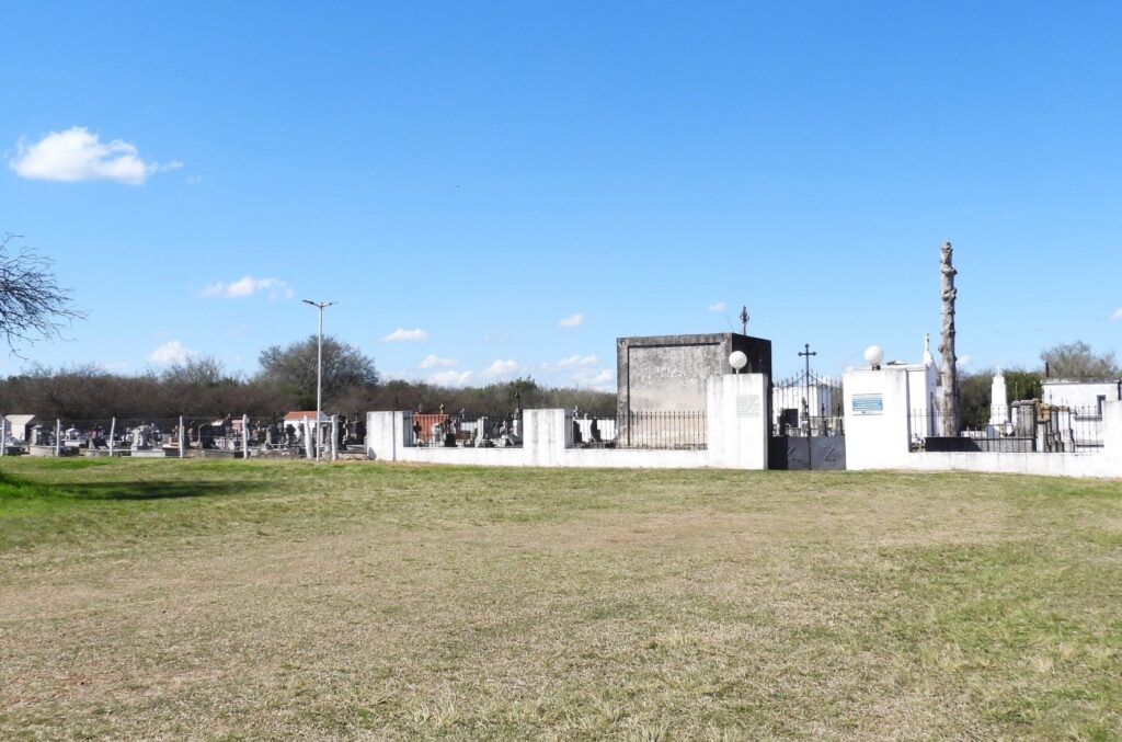 El camposanto fue ubicado, primeramente, a unos 200 metros de donde más tarde se edificaría el Polvorín; en ese sitio fueron sepultados los primeros muertos. Pero luego debió ser descartado, cuando una lluvia imponente derivó en la crecida del arroyo y la consecuente inundación del lugar. Las siguientes sepulturas se harían donde hoy se encuentra el portón de entrada al cementerio.