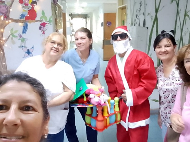 Papá Noel y Educando a Cielo Abierto llevaron regalos y contención emocional a niños internados en Pediatría, UTI y Neonatología.