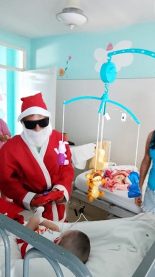El 24 de diciembre, a las 10 de la mañana, Papá Noel —encarnado con ternura por Gabriel— recorrió Pediatría, UTI, Neonatología y la sala de aislamiento, llevando un obsequio para cada pequeño. Sonrisas tímidas, miradas curiosas y momentos de emoción transformaron, aunque fuera por un rato, la rutina hospitalaria en una escena llena de esperanza.
