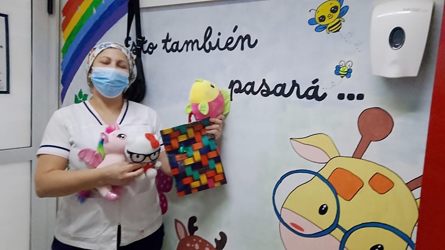 Enfermeras que tienen acceso a la sala de aislamiento llevaron los obsequios a los pequeños.