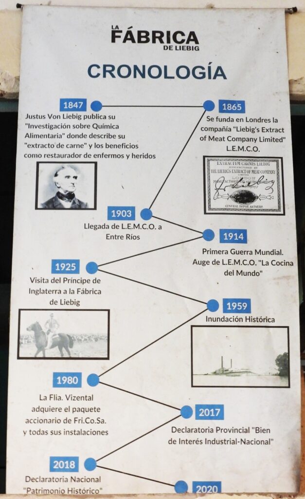 Capitales ingleses adquirieron el patentamiento e instalaron sus fábricas en diferentes lugares del mundo, en la ciudad de Colón, a orillas del Río Uruguay, entre otros. En su entorno nació Pueblo Liebig, ironías de esas que en la vida abundan, el profesional alemán jamás pisaría estas tierras.