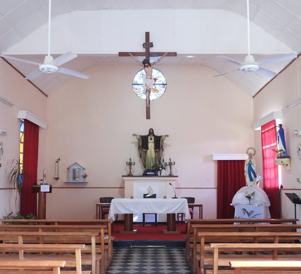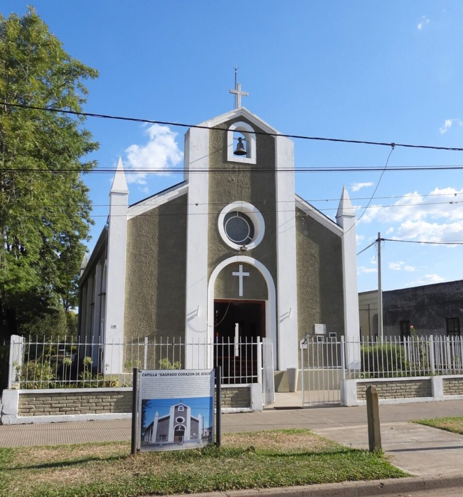 Entre las postales de Pueblo Liebig, descubrimos la “Capilla del Sagrado Corazón de Jesús”, cuya construcción fue autorizada por el Sr. Kenneth Carlisle, Presidente del Directorio en Londres, a pedido de su esposa, en el año 1948; todos los gastos corrieron por cuenta de la Liebig’s Extract of Meat Company Limited.