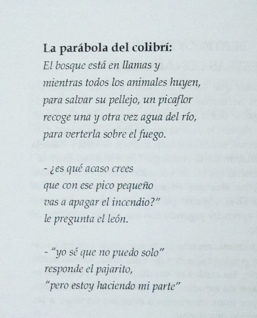 Entre los géneros que la escritora ha desarrollado, una parábola, un relato breve, de carácter didáctico, en el que, a través de una situación ficticia, se transmite una enseñanza.