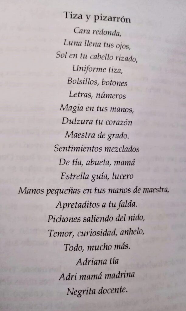 Sustantivos y adjetivos peregrinan en estos cálidos versos que describen a María Adriana Raviol, la amada hermana de nuestra autora, en su eximia tarea docente, cargados de una exquisita sensibilidad.