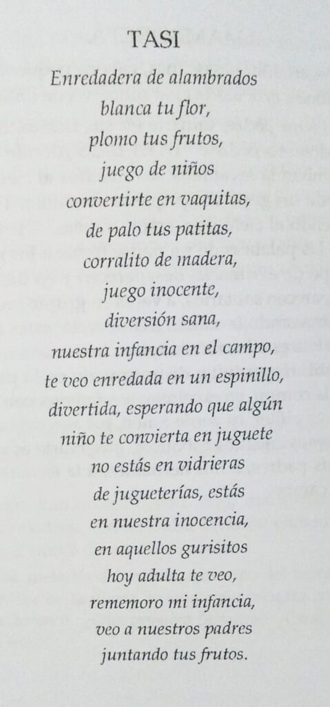 Una planta que la escritora personifica y le asigna un valor que solo los niños pueden otorgarle, tasi, con una bonita floración, digna de haber sido cultivada, y hoy recordada.